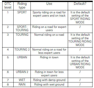 This function allows you to customise the level of dtc intervention (ducati traction control) or disable it for every riding mode.